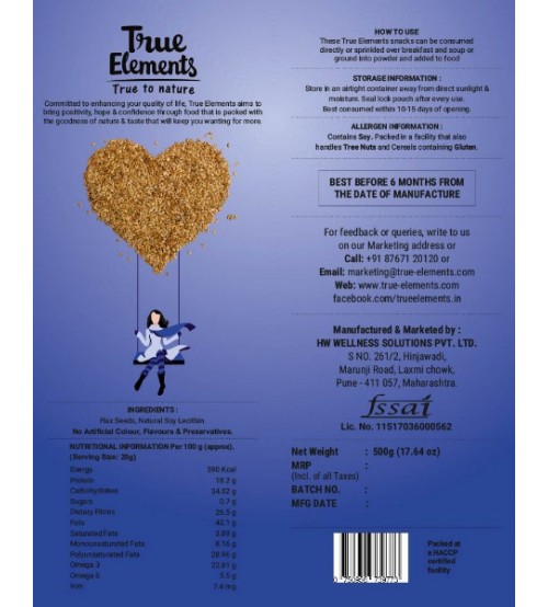 True Elements Flax Seeds Roasted 500gm