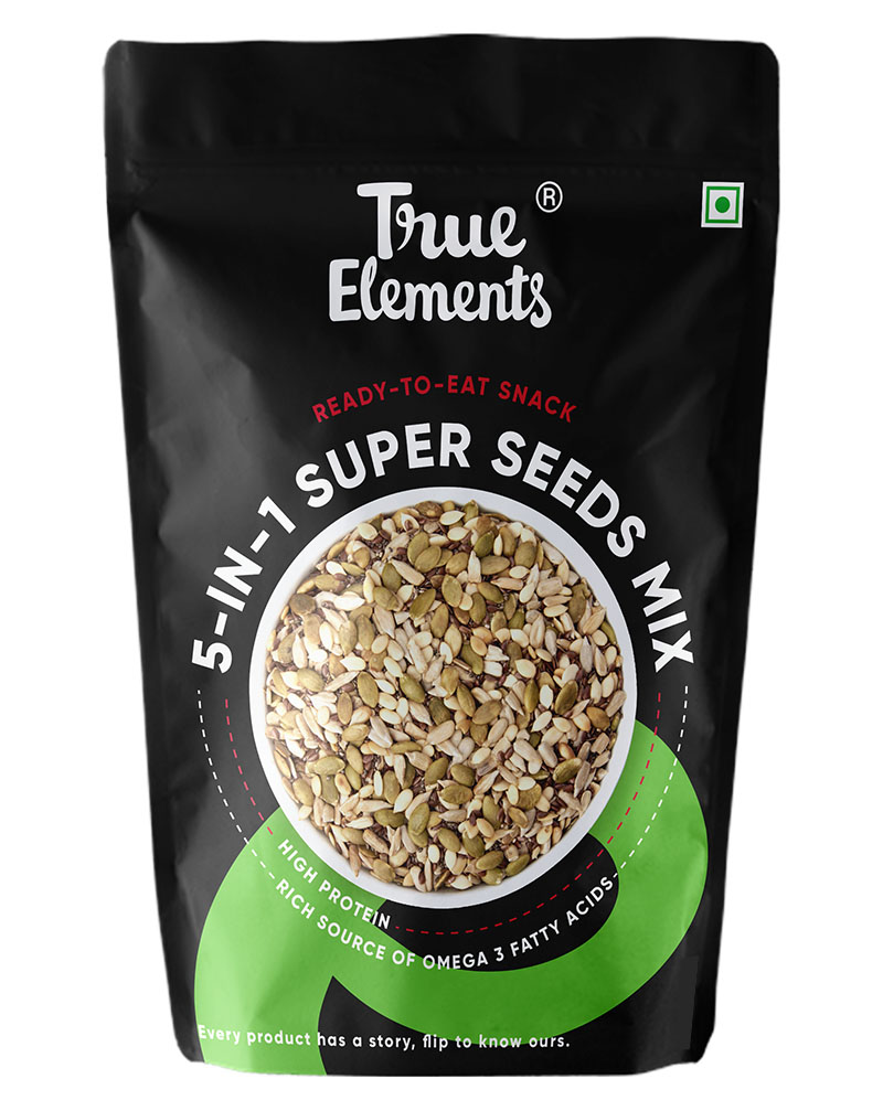 True Elements brings to you a premium combo of 5 superseeds, all of which possesses its own specific health benefit. Being antioxidant-rich, these seeds tend to protect your health from the unwanted foreign particles entering your body. Roasted Sunflower Pumpkin Flax with Watermelon & Chia Seeds are a combination of healthy seeds which are a powerhouse of nutrients. Along with its healthy side, it is a combination of seeds with a unique and quite delicious taste. They are beneficial for the overall health of the body due to its mixed combination of vitamins, minerals and other essential nutrients in it.