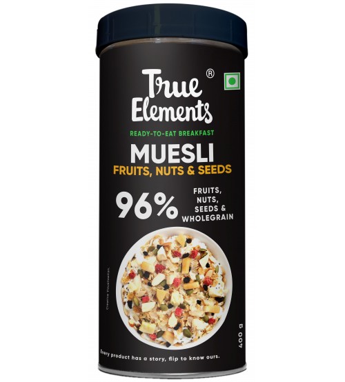 True Elements Fruit and Nut Muesli is a rich treat for breakfast, made of whole grains and delicious dried fruits and crunchy nuts. Fruit and Nut in the dried form are extremely rich in essential minerals and vitamins and can help you maintain a healthy being. It is one of the best breakfast cereals. Fruit and Nut Muesli is nutty, crunchy and a healthy treat for your family offering a pleasant flavour. It is suitable for consumption by kids, youth, weight watchers and fitness freaks.